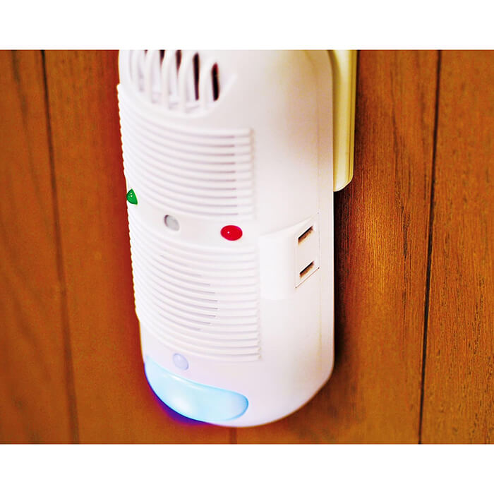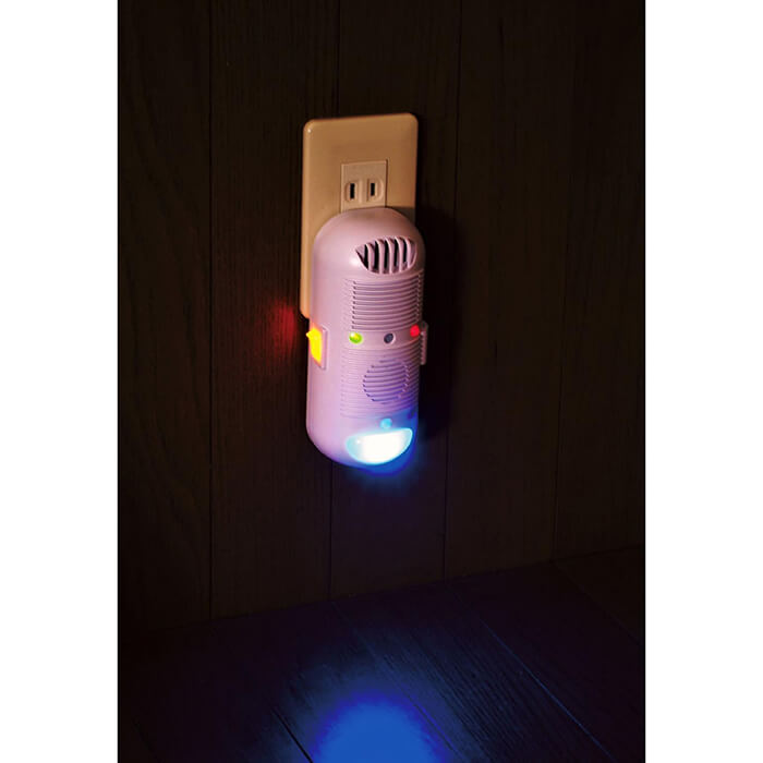 5機能搭載(超音波、電磁波、マイナスイオン発生、ACソケット付き、ナイトランプ自動点灯)。