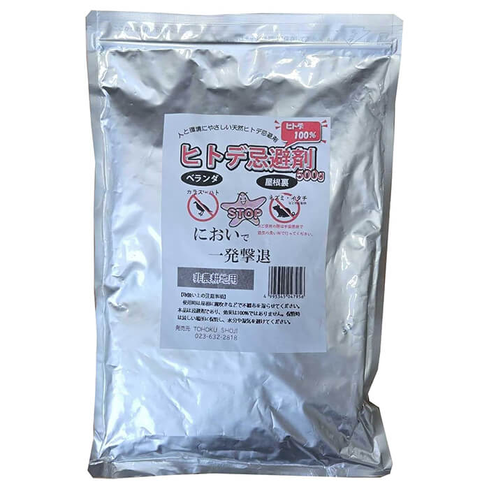 ・人と環境にやさしい天然ヒトデ100%。ヒトデが外敵から身を守るために体内に蓄えている「ヒトデサポニン」というにおい成分で害獣や害鳥などを寄せ付けない。