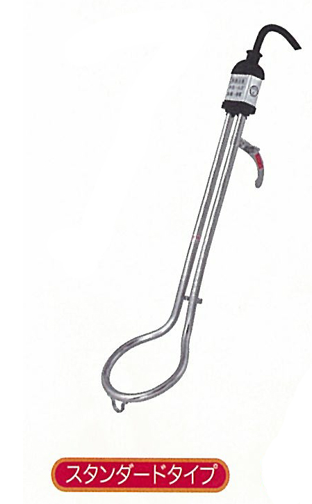 ■建築・土木・内、外装業関係に… ■農業・漁業関係に… ■船舶での給湯・洗浄に■屋外タンクの凍結防止に■稚魚・魚の発育・養殖に■温室内の加湿器として ■商業・工業関係に… ■調理場の器具・食器洗浄に■魚市場での消毒、洗浄に■屋台での食器洗浄に■工場内の機械、器具洗浄や洗面・手洗いとして ■一般・家庭で… ■車や、ペットの体洗いに■屋外イベントの給湯に■屋台でのお風呂の湯沸に■災害時の給湯など 【ここがポイント!】 投げ込むだけでお湯が沸く!ロングセラーのシンプルタイプ 温度上昇時間の目安:水の量(リットル)×水の上昇温度÷860×1.3 水の量は30Lまでです。水以外の液体・ポリバケツ使用不可。モールド部・電気ボックス部は水がかからないようにしてください 【商品詳細】 容量 1000W 定格電圧 100V 長さ 500mm コード長さ 2M 材質 銅パイプ(CUT)