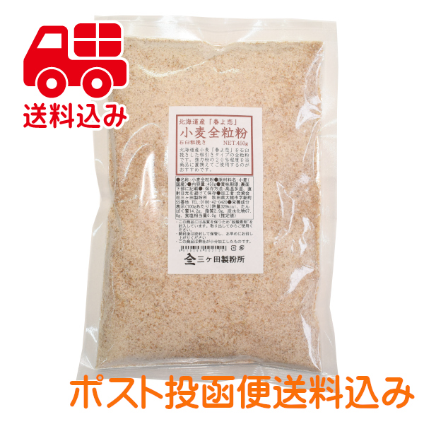 小麦全粒粉 450g 北海道産 春よ恋 粗引き 石臼挽き 国産 送料無料