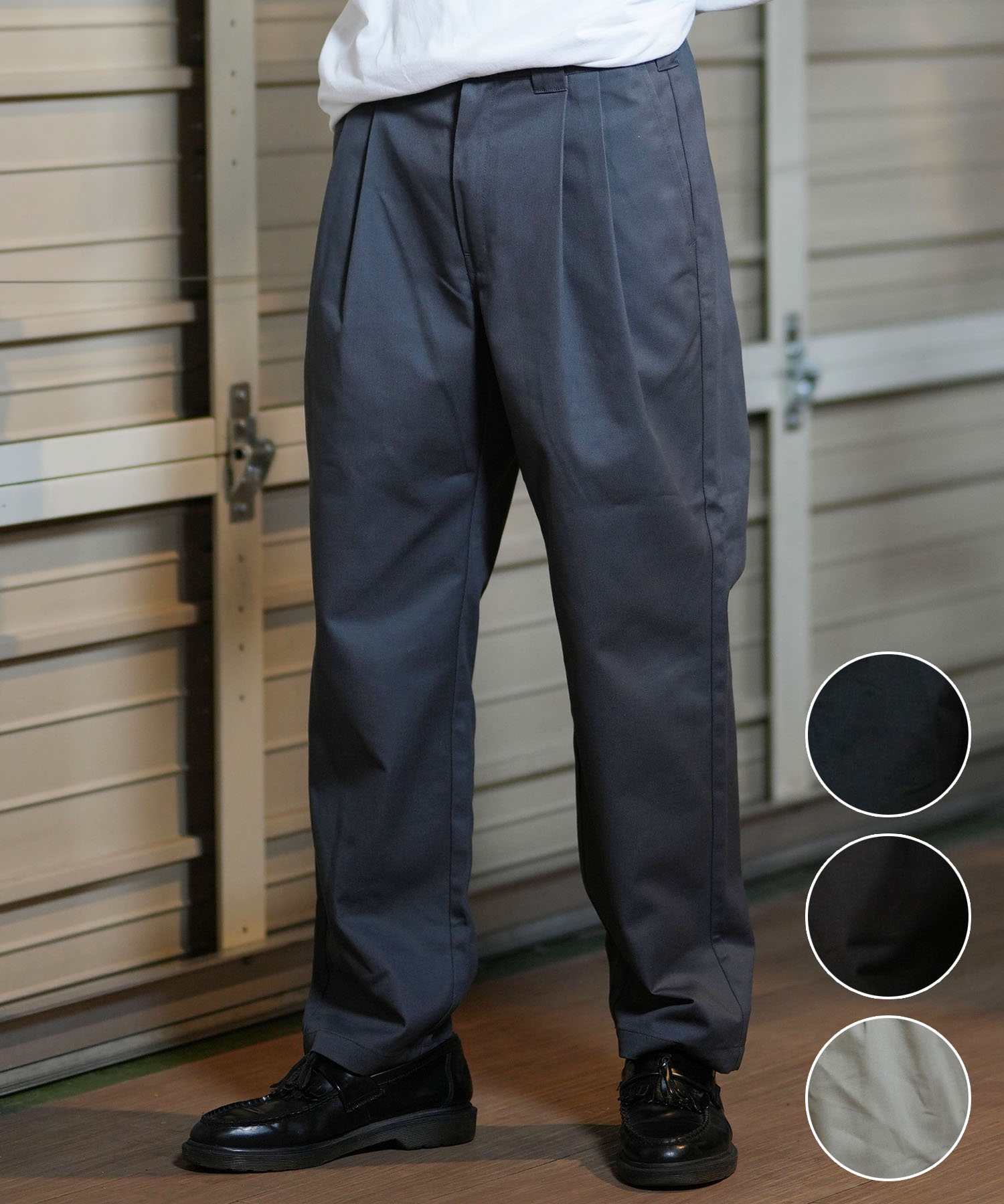 ●2タック入りのテーパードパンツ
