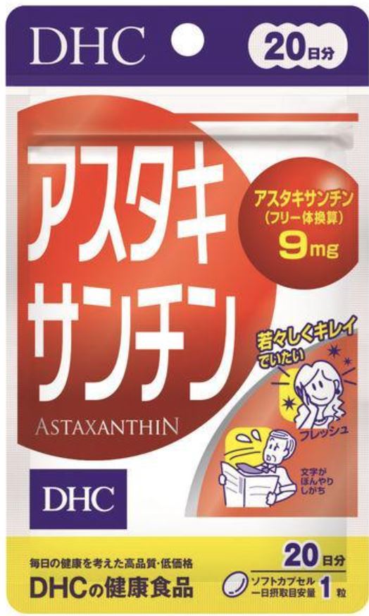 ●DHCの「アスタキサンチン」は、アスタキサンチンを高濃度に詰め込んだソフトカプセルです。原料には、豊富にアスタキサンチンを含有し、サケなどの体色のもとになっているヘマトコッカス藻を採用。水質、温度など最適なコンディションで管理栽培し、新鮮な状態のまま抽出しました。1日1粒目安で、毎日の食事だけでは補いにくいアスタキサンチンを9mgも含有し、さらに、ともにはたらくビタミンEを配合してはたらきを強化しました。キレイを維持したい方や生活習慣が気になる方などにおすすめです。