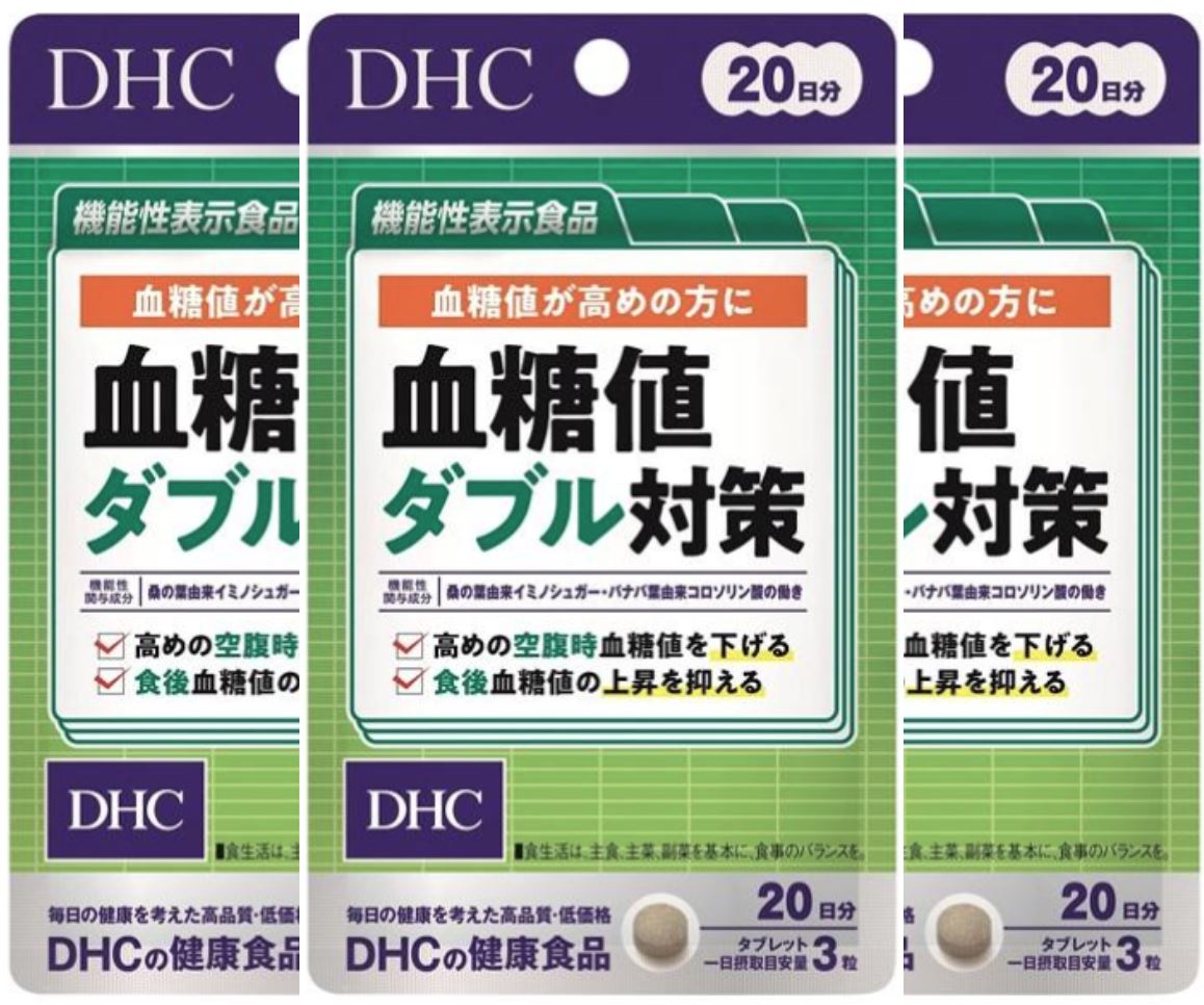DHCの「血糖値ダブル対策」は、【機能性表示食品】として、食後の血糖値上昇を抑え、高めの空腹時血糖値を改善するサプリメントです。糖質の吸収を抑える桑の葉由来イミノシュガーと、血糖値をサポートするバナバ葉由来コロソリン酸を配合。食事による糖の影響をコントロールし、健康的な食生活を応援します。