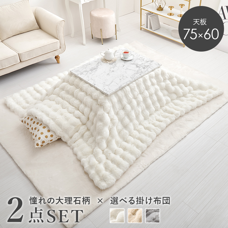 こたつテーブルセット 2点セット 75×60 こたつ こたつセット 長方形 こたつ布団 こたつテーブル 洗える コタツ 炬燵 大理石柄 姫系 アルラ 掛布団 ルナ