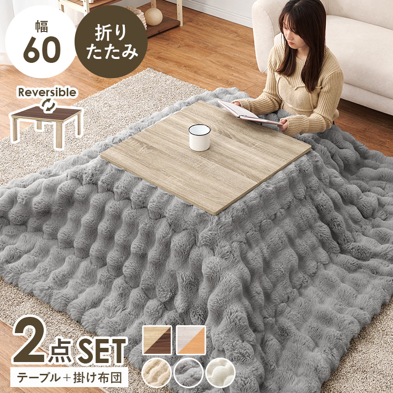 こたつテーブルセット 2点セット 60×60 こたつ こたつセット 1人用 一人用 こたつ布団 こたつテーブル 洗える 折りたたみ コタツ 炬燵 北欧 木目調 ルナ