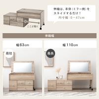 伸縮式ドレッサー ホワイト 横幅63〜110cm ミラー付 収納 2口コンセント付 大容量 収納 メイク道具 ヘアスプレー ドライヤー ヘアアイロン