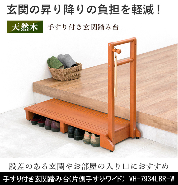 玄関台 玄関 踏み台 手すり 100cm 片側 木製 おしゃれ 靴 収納 片手 片側てすり 階段 段差 階段 玄関ステップ 介護 転倒 防止 VH-7934LBR-W