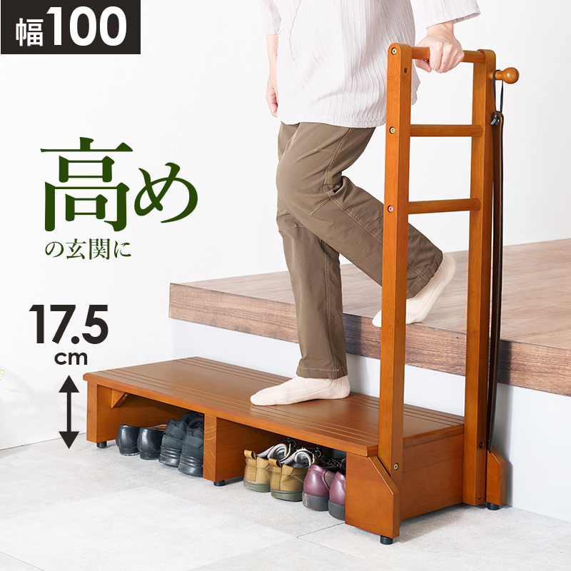 玄関台 玄関踏み台 高めの玄関 ワイド 踏み台 手すり 100cm 片側 木製 おしゃれ 靴 収納 片手 片側てすり 階段 段差 階段 玄関ステップ 介護 転倒 防止