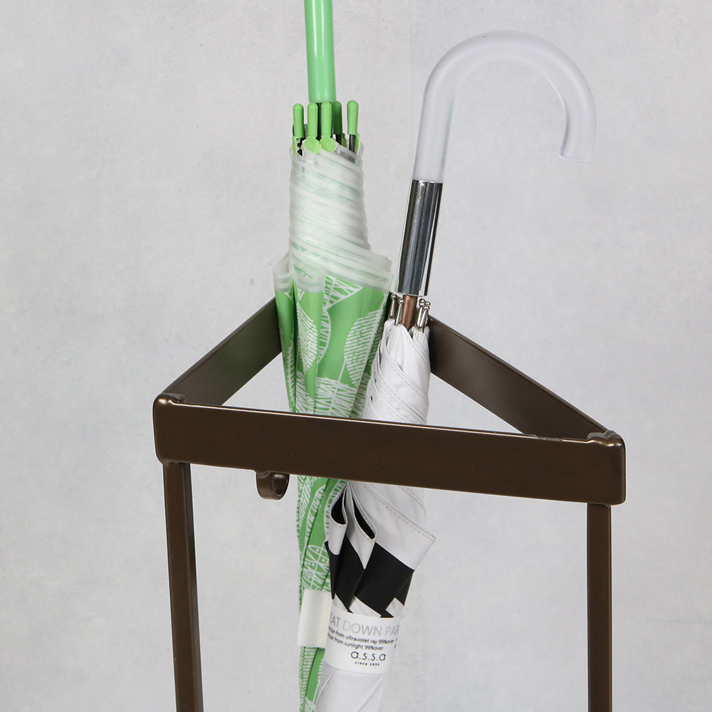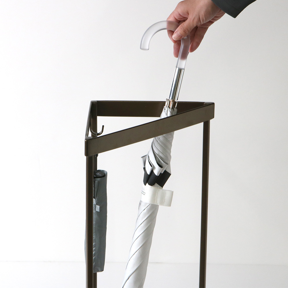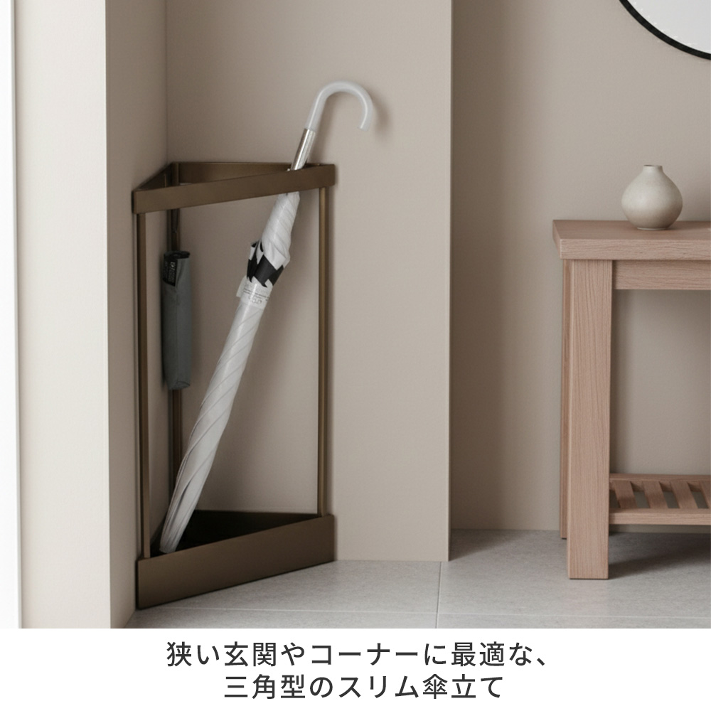 狭い玄関やコーナーに最適な、三角型のスリム傘立て