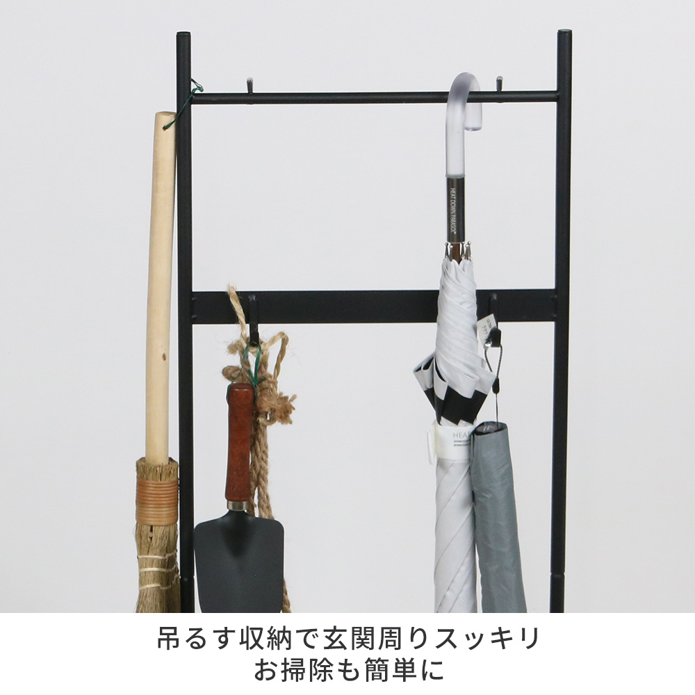 傘はもちろんU型とピン型フックで大容量のツール収納
