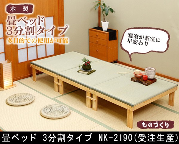 | 特 徴 | ベッドを3個に分別そうすればベッドが不要なとき、ベッド以外にも使用できます。 机の場合は畳の部分はが柔らかいので 何か硬いものを上に置いてご使用ください。 |
