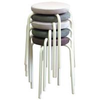 腰かけたり、踏み台にしたり、使い方色々のスツール。座面は、ポリエステルのファブリックで脚はミルキーホワイト色、スタッキングできます。