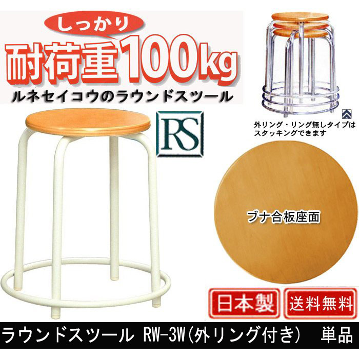 ラウンドスツール RW-3W ルネセイコウ ラウンドスツール RW-3W(外リング付き) 丸イス 丸スツール パイプイス スタッキング フットレス付き