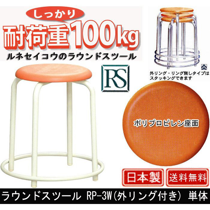 ラウンドスツール RP-3W ルネセイコウ ラウンドスツール RP-3W(外リング付き)丸イス 丸スツール パイプイス スタッキング 外リング付きラウンドスツール RP-3W
