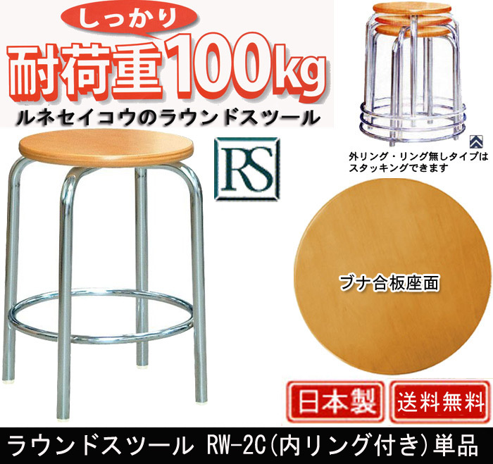 ラウンドスツール RW-2C ルネセイコウ ラウンドスツール RW-2C(内リング付き)丸イス 丸スツール パイプイス スタッキング 内リング付きラウンドスツール RW-2C