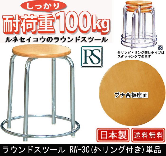 ラウンドスツール RP-3W ルネセイコウ ラウンドスツール RW-3C(外リング付き) 丸イス 丸スツール パイプイス スタッキング 外リング付きラウンドスツール RW-3C