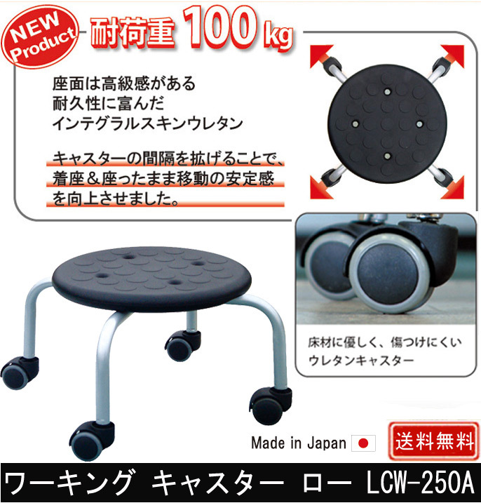 ワーキングキャスター ロー LCW-250A インテグラルスキンウレタン ルネセイコウ ローキャスター スツール 作業用イス オフィス 低い姿勢 業務用作業イス ガレージチェア 床を相手にする作業に 日本製 座ったまま作業できる ワーキングキャスター ロータイプ 〔1脚販売〕 スツール チェア キャスター付き