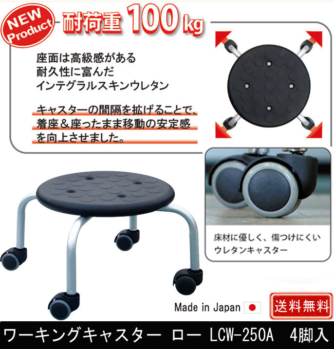 ワーキングキャスター ロー LCW-250A ワーキングキャスター ロー LCW-250A 4脚入 インテグラルスキンウレタン ルネセイコウ ローキャスター スツール 作業用イス オフィス 低い姿勢 業務用作業イス ガレージチェア 床を相手にする作業に