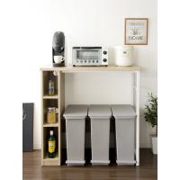 ごみ箱を入れても上にたっぷりと余裕があるオープンスペースや高さの変えられる収納棚、2つのコンセント付きなど汎用性が高く使いやすいのが特徴です。