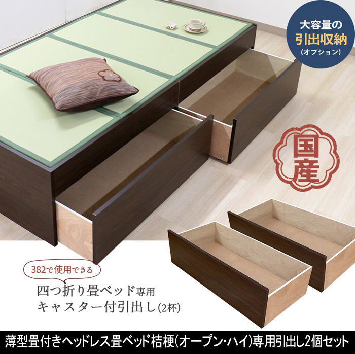 薄型畳付きヘッドレス畳ベッド桔梗(オープン・ハイ)専用引出し2個セット