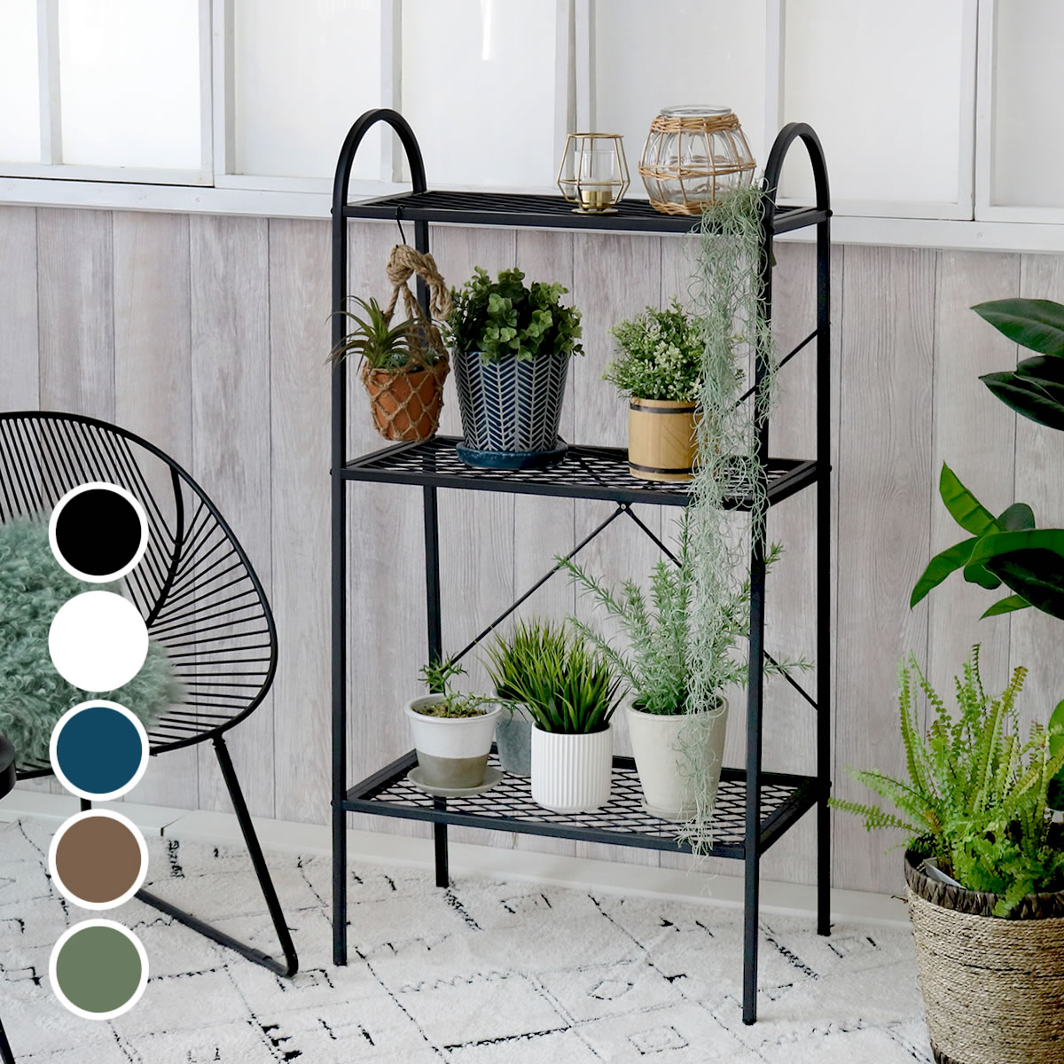 棚板は丈夫なアイアンメッシュ素材。プランターの日当たりや風通しを良くして、植物の成長をサポートします。