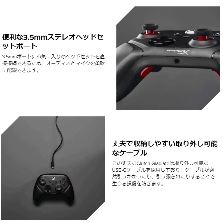 | 同梱品 | HyperX Clutch Gladiate、USB-C - USB-Aケーブル |