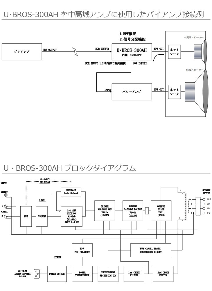・バイアンプ、マルチチャンネルアンプ用の機能