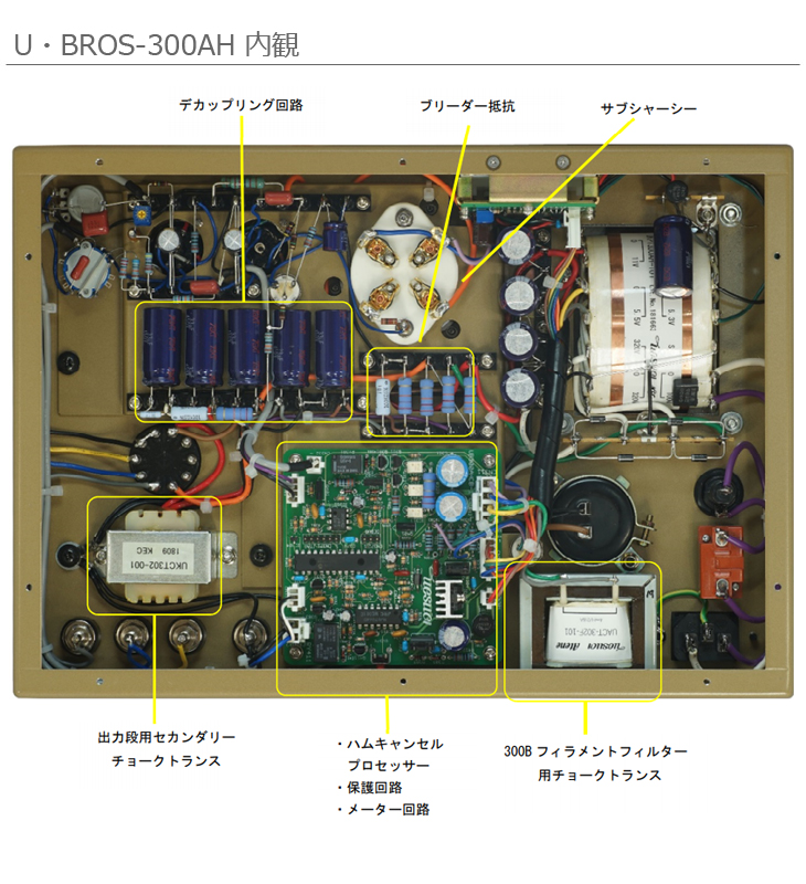 【数量2(ペア)でご注文ください】※ご購入前に必ず納期のお問合せください 納期にお時間がかかります U-BROS300AHPS 交流点火による無帰還 300B シングル出力パワーアンプ WE300B(PSVANE)付