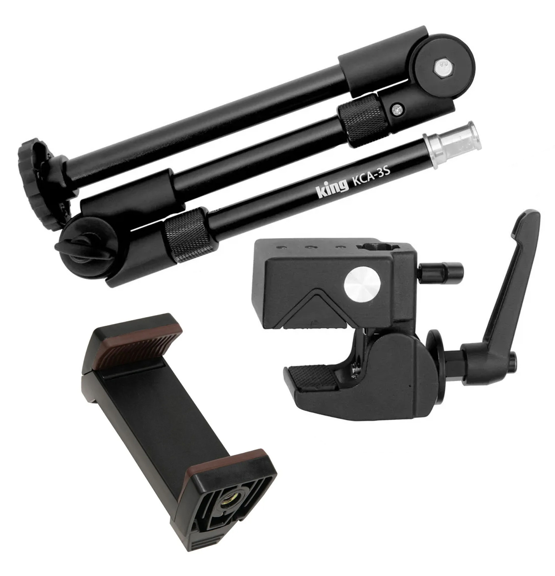 【KING CA-3S マルチクランプアーム の特長】CA-3Sは、機材の取り付け自由度と柔軟な設置が特長の多機能アームです。
