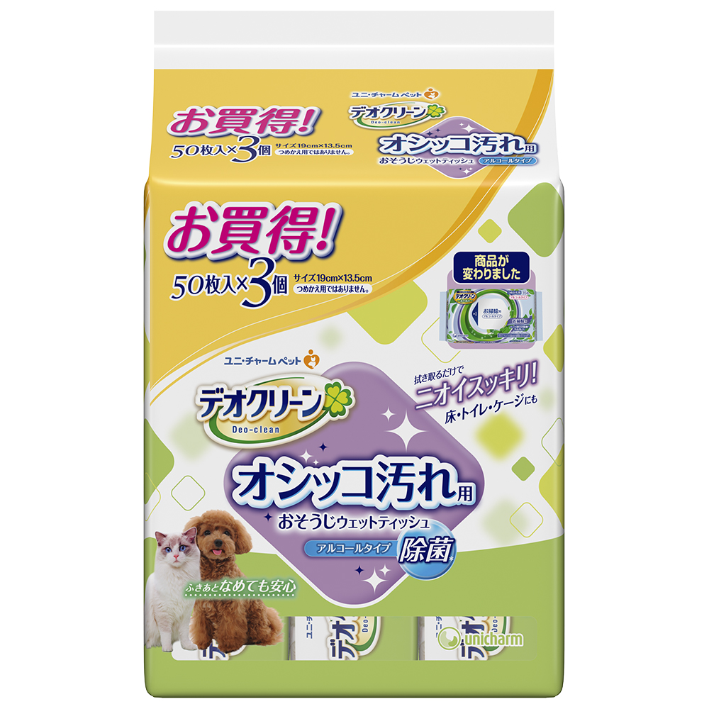 | デオクリーン オシッコ汚れおそうじウェットティッシュ 50枚×3個パック スペック情報 |