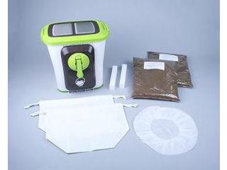容器/PP 蓋メッシュ部/SUS304 ・ 巾着袋/PET ・ ふたカバー/PP ・ 底敷ブロック/発泡スチロール チップ材:有効微生物群