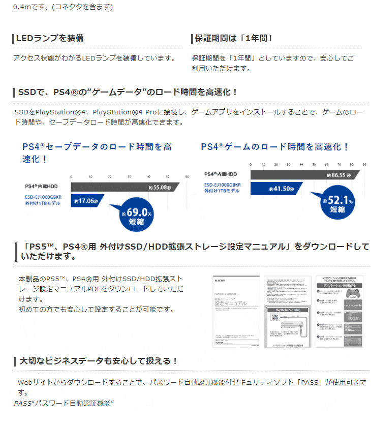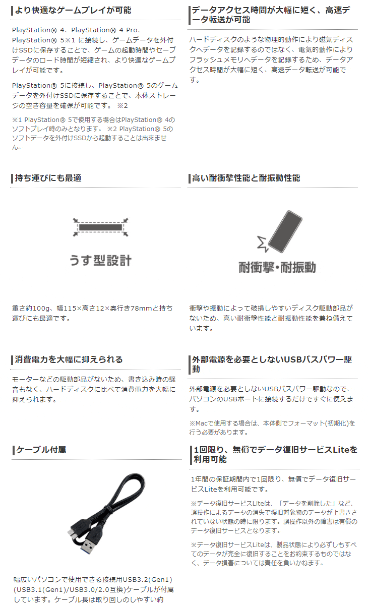 | 対応ゲーム機 | PlayStation 4、PlayStation 4 Pro、PlayStation 5 ※PlayStation 5のソフトデータは拡張ストレージから起動できません。 |