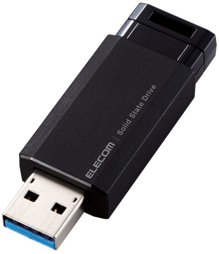 ESDEPK1000GBK ノックで出して自動で収納できる、USBメモリサイズで読み出し最大600MB/sの高速データ転送を実現するUSB3.2(Gen2)外付けポータブルSSD。