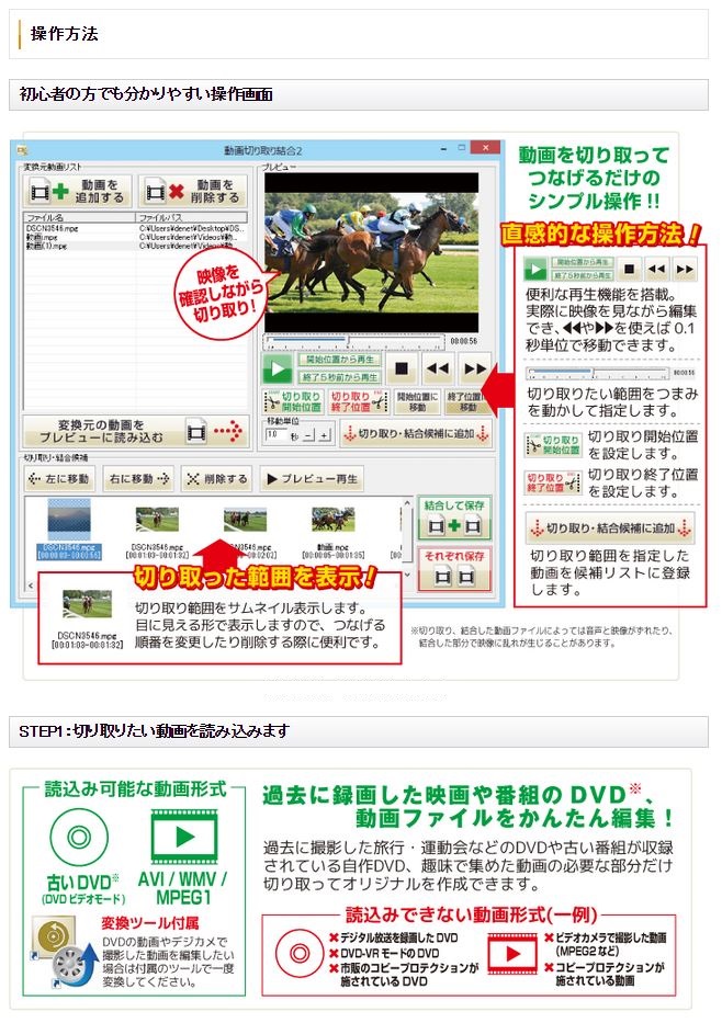 DE325 DVDの動画や動画ファイルからお気に入りのシーンを切り取り、1つの動画に結合してまとめよう!