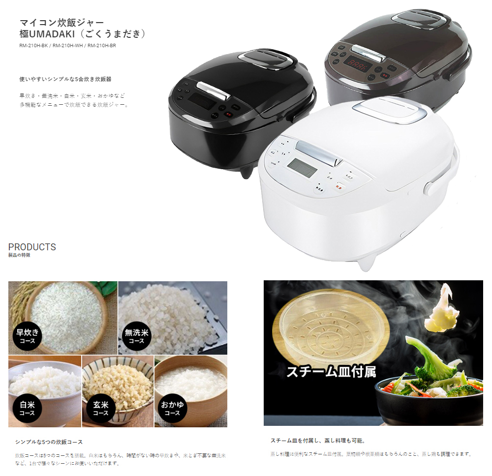 | RM-210H-BK マイコン炊飯ジャー極UMADAKI(ごくうまだき)【5合炊き】ブラック スペック情報 |
