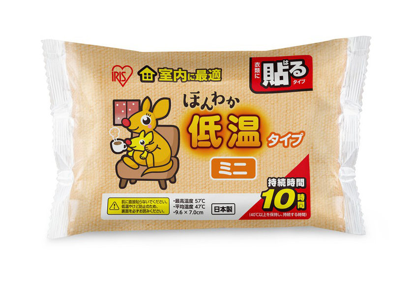 ミニサイズの貼るタイプのほんわか温かい低温カイロです。