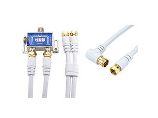 アンテナからの1つの信号を2つの機器へ効率良く分配します。(例:2台のテレビ/テレビと録画機器/STBとモデム 等)コネクタはネジ式ですのでしっかりと機器に接続でき、抜け落ちる心配がありません。■ノイズに強いメタルケース入■全端子BSアンテナ電源供給可能■S-4C-FB規格同軸ケーブル2本付属アンテナケーブルF型差込式/ネジ式コネクタ L字/ストレートタイプ地デジ・BS/CS放送対応。両端子金メッキ仕様 【壁面等で壁と家具の隙間に取り付ける場合有効です/TV等の機器にはしっかり接続できます】