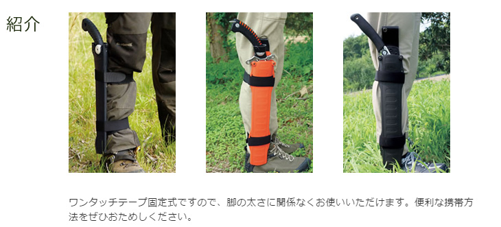 鞘入り鋸を脚に装着することによって、鋸の抜き差しがスムーズに行えます。