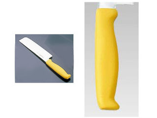 特長:ハンドルは抗菌加工が施され、衛生管理に最適。現場の声にもとずいた握りやすく、疲れない、滑りにくい、耐久性抜群のハンドル。ハンドルカラーを6色用意。食材別に使用でき衛生管理ができます。熱湯殺菌(100度 20分)にも対応。インサート成型により口元からの水、雑菌の浸入を防ぎます。材質:刀身:モリブデンバナジウム鋼、ハンドル:エラストマー樹脂(ノバロン銀系無機抗菌剤配合)耐熱温度:115度