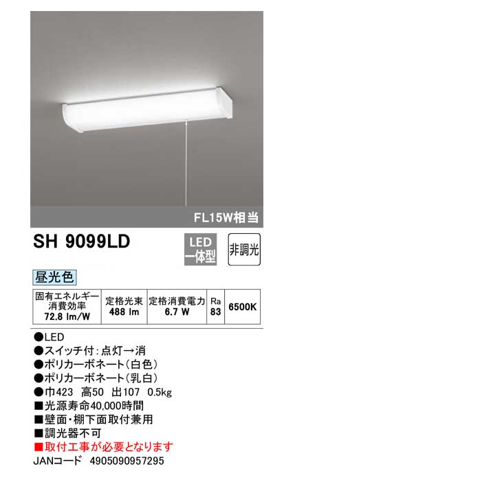 SH9099LD LEDキッチン流し元灯 昼光色 スペック情報