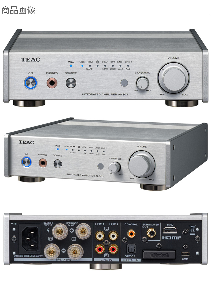 【当店はTEAC製品正規販売店です】 ※当店在庫僅少、次回納期26年1月下旬以降 AI303 AI303S 小型アンプにHDMI(R)入力、Bluetooth(R)、USB入力を搭載し HD音源(ハイレゾ)再生にも対応したデスクトップオーディオ・アンプ