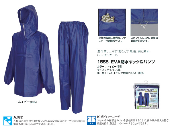 EVA防水ヤッケ&パンツ 1555 ネイビー(55) M スペック情報