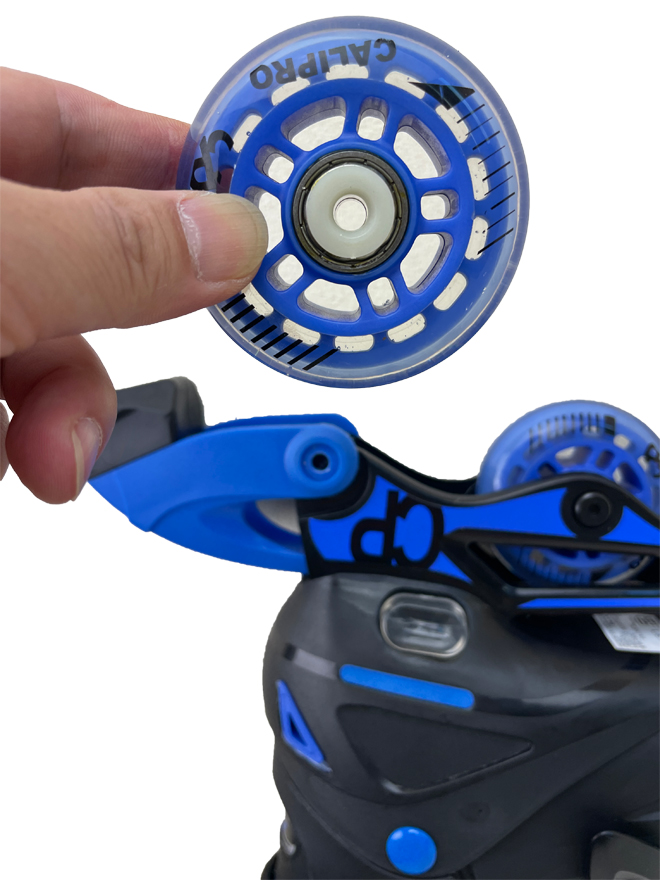 滑走前、休憩時、滑走後などにウィール部分のネジのゆるみを確認し、付属の6角レンチで締めてください。