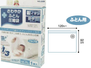 抗菌防臭効果、防ダニ効果のある圧縮袋。