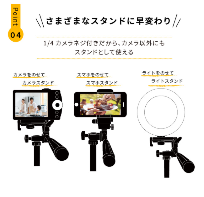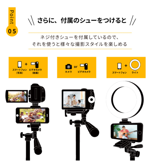 「SNS動画撮影」「YouTube」「テレワーク」等に便利なスマートフォン・カメラ両用スタンド。