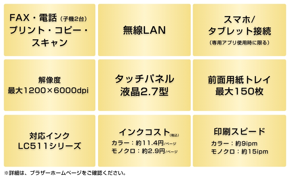 | A4文書インクコスト(カラー/モノクロ) | 約11.4/2.9円/ページ |