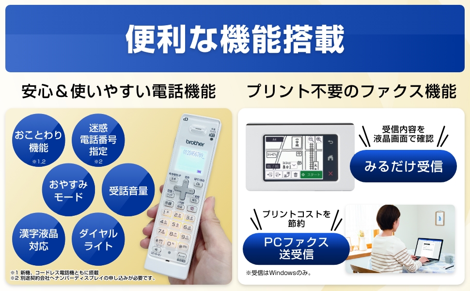 | 基本機能 | プリント/コピー/スキャン/ファクス/コードレス電話機 |