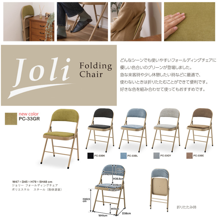 joli ジョリー フォールディングチェア ブルー PC-33BL パイプ椅子 折り畳み椅子