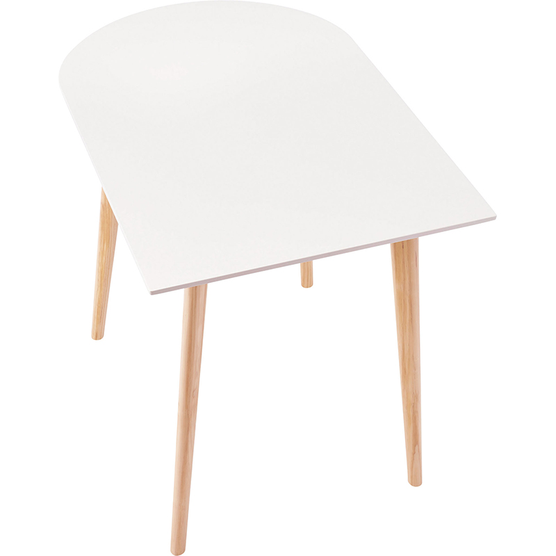 ●一辺に曲線を取り入れたやさしいフォルムで、凹凸のない滑らかなホワイト天板と、天然木の脚の組み合わせが可愛らしさを演出してくれます。