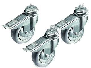 M10アタッチメント付きφ100mmのキャスター(ブレーキなし)。3個セット。